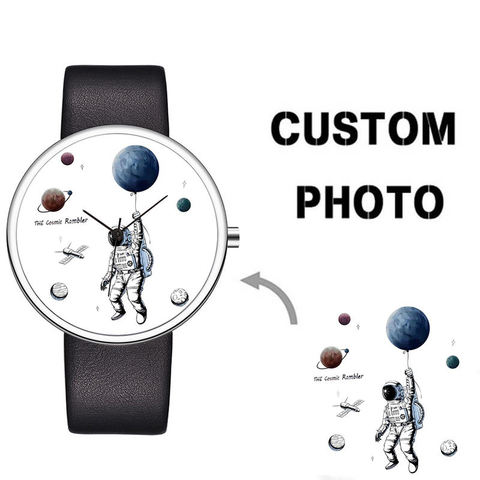 Haga su propio reloj de diseño personalizado Personalizar imagen Foto Imagen Impresión Mujeres Hombres Reloj