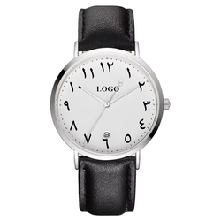 Özel adam markalı izle toptan Logo basit beyaz saatler OEM özel etiket arapça numaraları bilek Mens izle